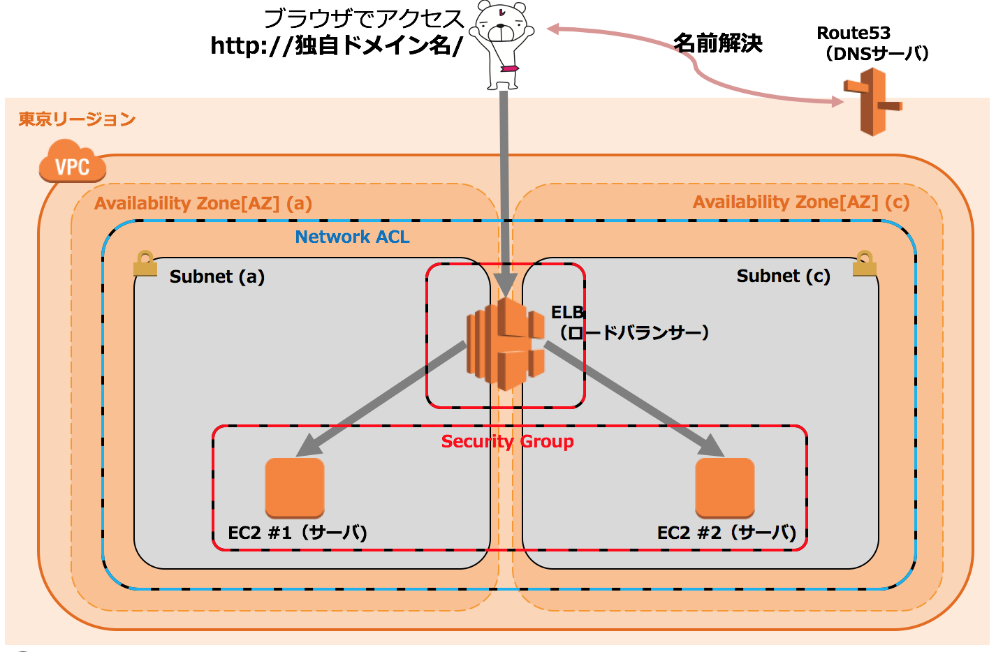 今回は初心者の方を対象にAWS上でWebサーバを構築するという課題で行いました。 利用したAWSのコンポーネントは、EC2、ELB、Route53と、Network ACL、Security Groupです。
